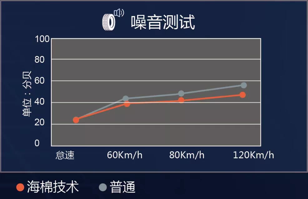 與同一產(chǎn)品普通輪胎相比,運(yùn)用吸音海綿技術(shù)的輪胎,依照寸別不同,分別可降低噪音5-10dB,輪胎尺寸越大,降噪感覺(jué)越明顯。