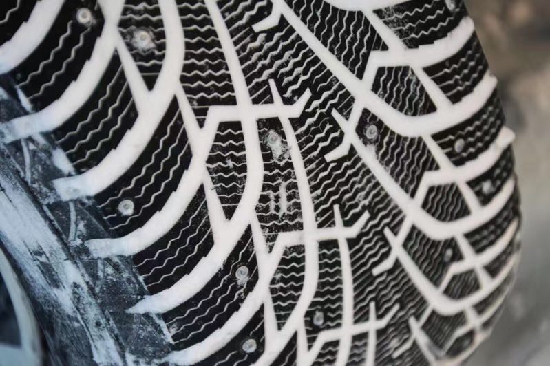 全新打釘胎在花紋部分包含了不同幾何設計的溝槽,能夠幫助輪胎很好地克服例如像是排水和來自接觸點的雪的混合物。同時,也能保證最佳的冰雪抓地力。除此之外,在花紋塊之間還布有特殊的彼此連結的部分,能夠降低噪音等級和提高胎面的硬度來提升操控性和穩(wěn)定性。而在花紋塊上還分布了在冰上行駛吸收水份的“吸嘴”并保證有必要的抓地性能。,Maxxis新胎的釘子座落在14排線上,而分部情形的優(yōu)化幫助提升起步加速和減少冰地路面上煞車的距離和長度。在增加了提高磨耗穩(wěn)定度的二烯橡膠到配方之后,瑪吉斯并沒有忘記輪胎耐用度的重要性。