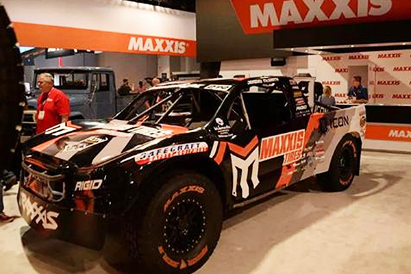 MAXXIS于SEMA展中共設(shè)立了“戶外”與“室內(nèi)”兩種不同展間,這兩大展間各塑造出不同面向之氛圍。戶外展間以多部曾參加Off-road賽事之車輛,道出MAXXIS于該領(lǐng)域之堅(jiān)強(qiáng)實(shí)力;然而室內(nèi)則陳列了針對(duì)顧客不同訴求而設(shè)計(jì)之主力商品,展現(xiàn)出MAXXIS之研發(fā)能力與產(chǎn)品性能。在眾多展臺(tái)中,瑪吉斯展臺(tái)設(shè)計(jì)最為酷炫且最大,在眾多輪帶品牌中,橘白色的標(biāo)志十分醒目。展上瑪吉斯主推MT越野輪帶,讓許多“暴力改裝”的愛好者眼前一亮。