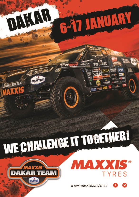 2019年1月6日,知名荷蘭車(chē)手Tim Coronel將在瑪吉斯輪胎的助力下,繼續(xù)帶領(lǐng)Maxxis Dakar Team瑪吉斯達(dá)喀爾車(chē)隊(duì)去挑戰(zhàn)世界上最危險(xiǎn)且致命的國(guó)際拉力賽?,敿惯_(dá)喀爾車(chē)隊(duì)的越野車(chē)‘野獸’,裝配了瑪吉斯4X4M8060,這款輪胎的結(jié)構(gòu)特別依照比賽需求所設(shè)計(jì),符合"Dakar"達(dá)喀爾使用標(biāo)準(zhǔn)并獲得100%Dakar認(rèn)證。